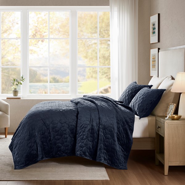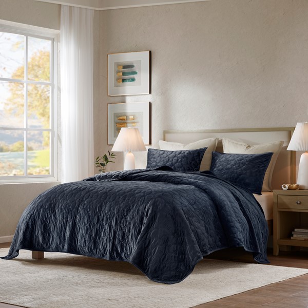 Madison Park Harper 3 Piece Velvet Quilt Set in Navy, Full/Queen MP13-3303