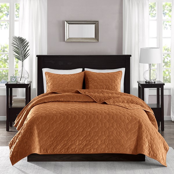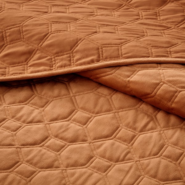 Madison Park Harper 3 Piece Velvet Quilt Set in Rust, Full/Queen MP13-8007