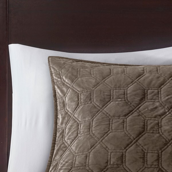 The Madison Park Harper Velvet 3 Piece Quilt Set offers a casual and comfortable update to your bedroom. The polyester velvet quilt features a soft texture with a geometric quilted design, for a rich look and feel. Matching shams pair beautifully with the quilt to complete the quilt set. Providing a charming layering piece to your bed, this quilt has an antimicrobial treatment that helps reduce bacteria buildup and odors, keeping the fabric fresh longer.