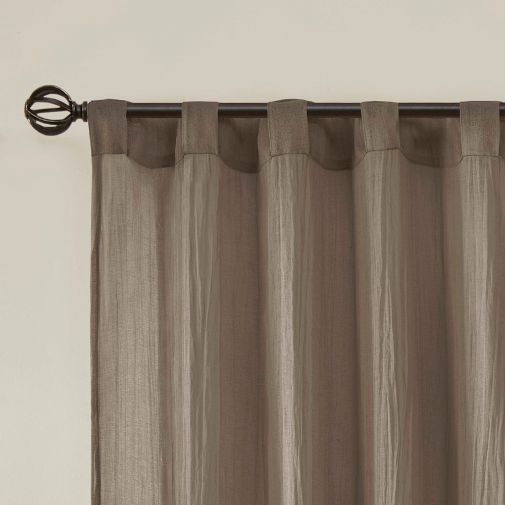 Add a fresh contemporary style to your home with Madison Park’s Harper Solid Crushed Window Panel Pair. Made from a lightweight taupe sheer fabric, this window panel pair is easy to drape and softly filters the perfect amount of light into your room. Crushed detailing on each panel provides a beautiful texture, adding a touch of modern elegance. Simply hang this sheer panel pair with the rod pocket top or use the back tabs for a more tailored finish to your decor; fits up to 1.25″ diameter rod. For a complete look, layer this panel pair with coordinating scarf or prints within the collection for a more custom appeal.