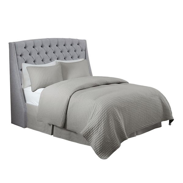 Wow, this headboard is absolutely gorgeous! It’s so well-crafted and the color is a perfect medium gray. And let’s not forget about the nailhead trim, it adds a touch of elegance that will make your bedroom feel like a fancy hotel.