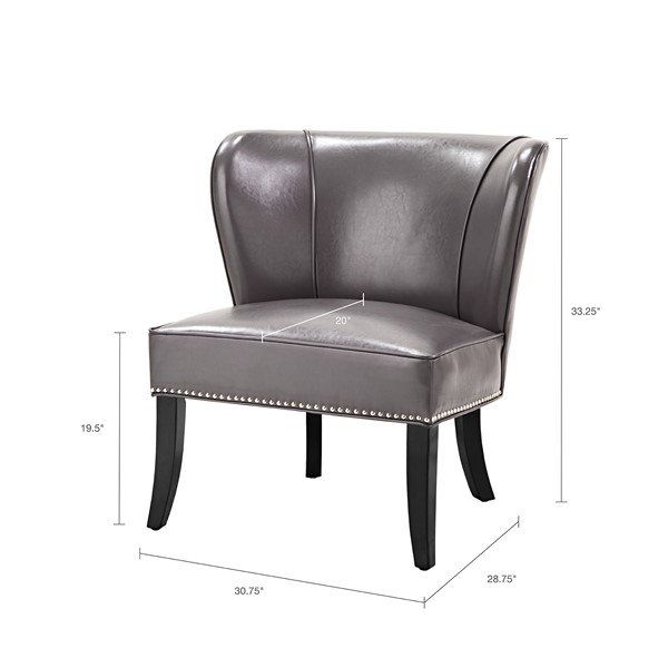 The Madison Park Hilton Armless Accent Chair introduces a bold, modern update to elevate a classic design. Flaunting an armless wingback design, this accent chair features individually placed silver nail heads to create an elegant trim on the faux leather upholstery. High-density foam filling offers and solid wood frame provides exceptional comfort and support. The solid wood legs showcase a dark finish that creates a beautiful contrast with the faux leather upholstery, for an eye-catching look. Sleek and stylish, this armless accent chair adds character and unique style to your living room. Leg assembly is required.