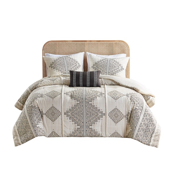 Madison Park Ibiza 4 Piece Printed Comforter Set with Throw Pillow in Black/Ivory, Full/Queen MP10-8337