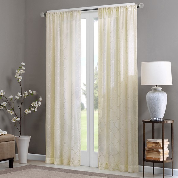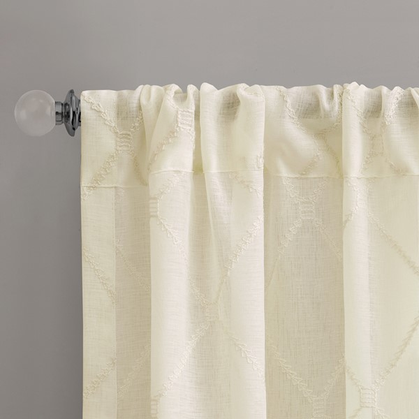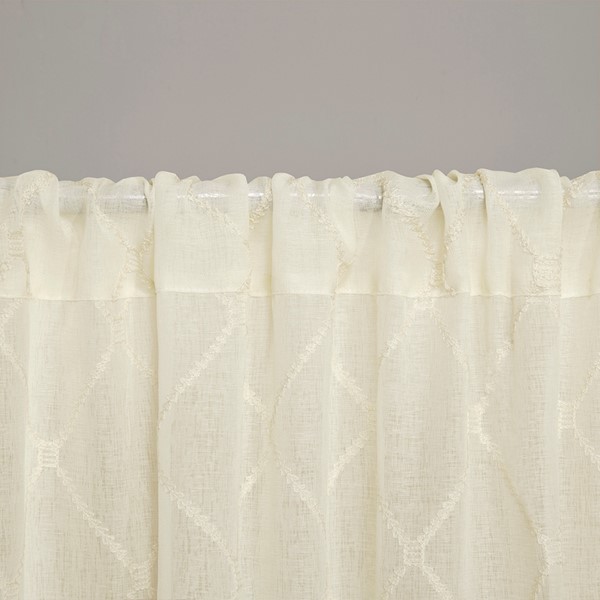 Madison Park’s Irina Diamond Sheer Window Curtain provides an alluring update to your home. An elegant diamond pattern is beautifully embroidered on a soft sheer fabric, adding grace and charm to your decor. The neutral colors and light fabric helps create a delicate look to soften any room. Hang this sheer window curtain using the rod pocket for a simple finish. Fits up to a 1.25" diameter rod.