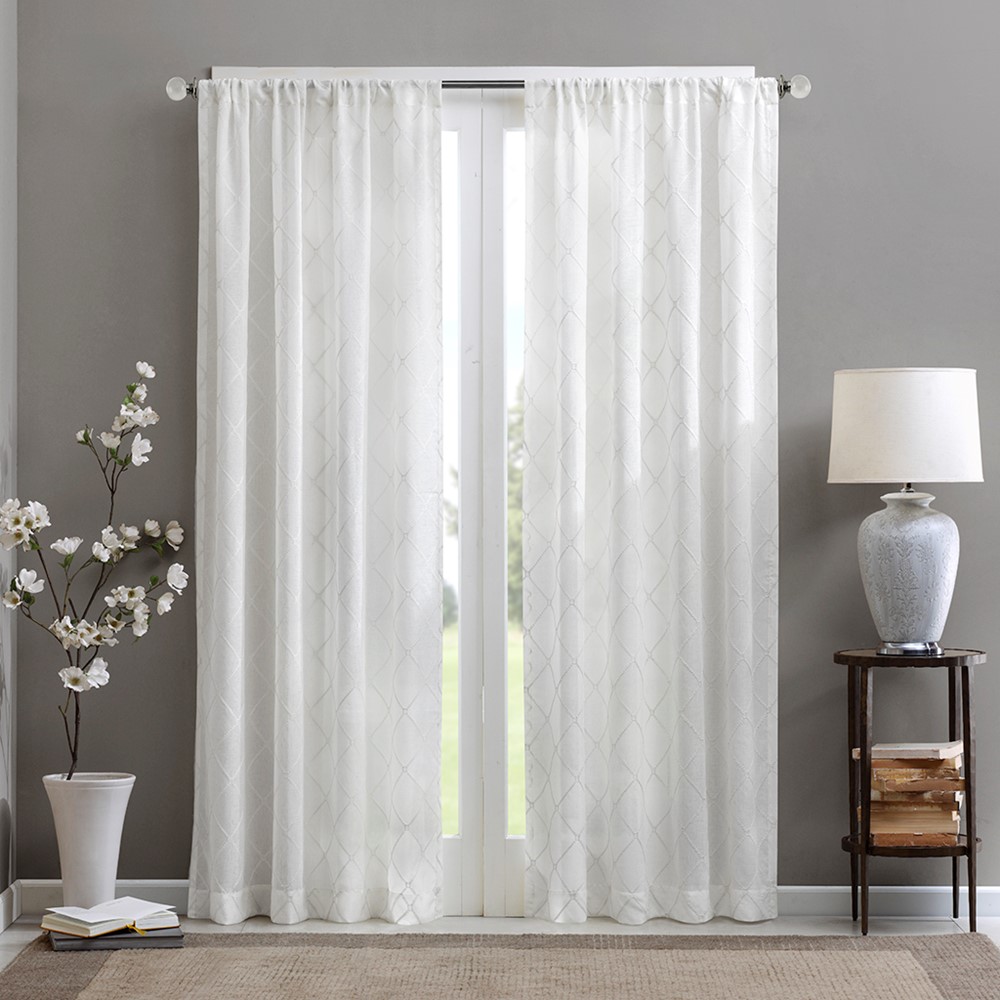 This Madison Park Irina Diamond Sheer Window Curtain adds elegance & charm with its embroidered diamond pattern on soft sheer fabric. A must-have for any room! #HomeDecorGoals