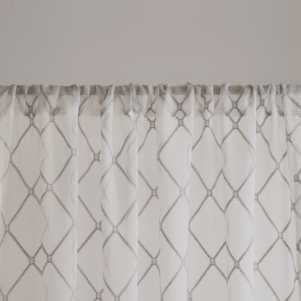 Madison Park Irina Diamond Sheer Window Curtain Panel in White/Grey, 50×95″ MP40-2331