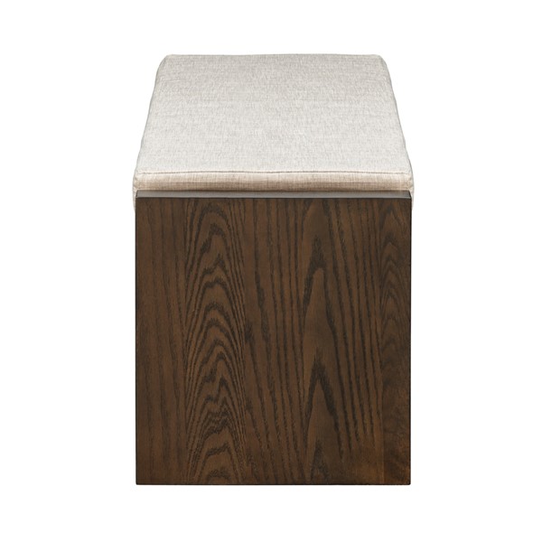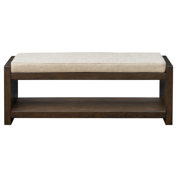 Fill out your entryway or complete your bedroom decor with the functional and stylish modern accent bench. This storage bench features a lower shelf that’s great for holding shoes or blankets, while a removable cushion provides added comfort. The cushion is also upholstered in a soft and light hued fabric that contrasts the rich brown finish on the frame, for a charming contemporary look that elevates your home.