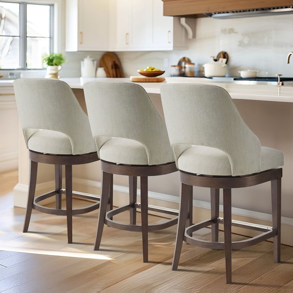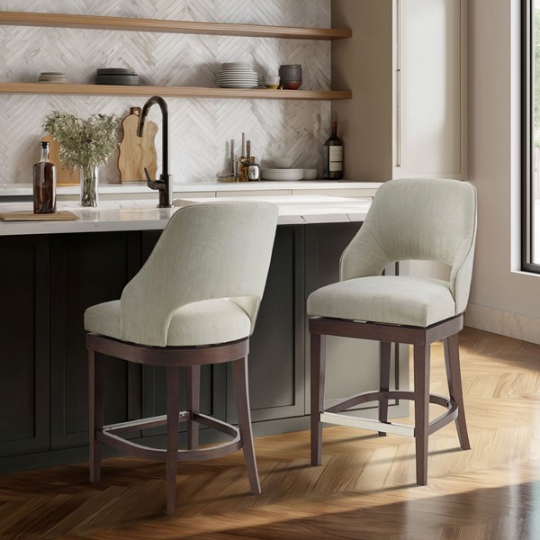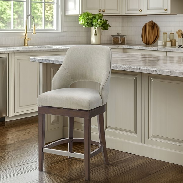 Elevate your kitchen or dining space with the Jillian Upholstered Counter Stool, where timeless design meets everyday comfort. Featuring a sophisticated cutout back with elegant piping and a plush, foam-filled seat, it offers a tailored, polished look that enhances any setting. The smooth, quiet 360-degree swivel provides effortless movement, while the armless, space-saving design tucks neatly under counters or tables. Perfect for kitchen islands, breakfast bars, or casual dining, this versatile stool combines style, function, and comfort in one refined piece. Bring elegance and ease to your home and experience the Jillian Counter Stool today.
