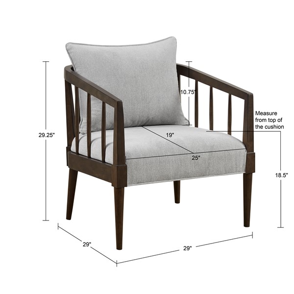 Madison Park Josefine Spindle Accent Armchair with Removable Back Pillow in Light Grey MP100-1219