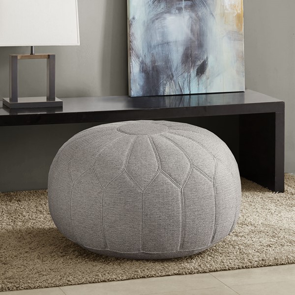 Madison Park Kelsey Round Pouf Ottoman in Grey MP101-0893