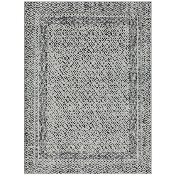 Madison Park Kenzie Moroccan Bordered Global Woven Area Rug in Grey/Cream, 8×10′ MP35-8071