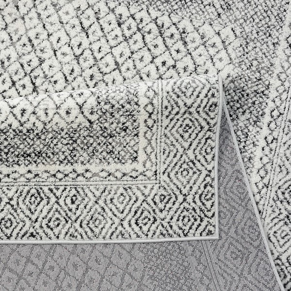 Complete any space in your home with Madison Park’s Kenzie Moroccan Bordered Global Grey and Cream, Area Rug. Made in Turkey, this area rug features a Moroccan-inspired pattern with a border design in soft grey and cream hues, for a chic contrasting look. The soft, medium pile makes the woven rug well suited for high traffic areas, while the transparent sprayed latex reverse helps keep the rug from sliding. A rug pad is still highly recommended to keep the rug in place. Stain and fade resistant, this woven area rug is OEKO-TEX certified, meaning it does not contain any harmful substances or chemicals to ensure quality comfort and wellness. Rug is available in multiple sizes, which makes it perfect for your living room, family room, or entryways. To clean, use a vacuum or spot clean.