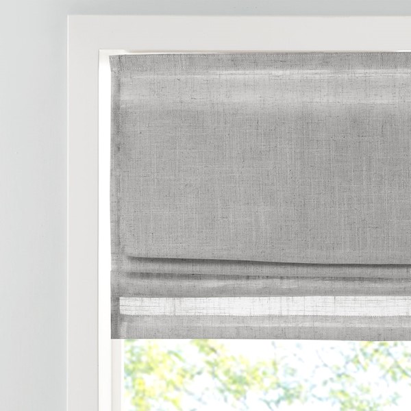 Casual and stylish, the Madison Park Kyler Linen Blend Light Filtering Roman Shade is an easy addition to freshen up any space. This roman shade features a beautifully textured linen blend fabric in a soft grey tone creating a natural look and feel, while the lightweight fabric lets the right amount of light into your home for a bright, yet soft and airy touch. The cordless retraction mechanism makes it easy to open and close the window shade throughout the day, while the detachable fabric face allows for easier assembly and cleaning by lightly shaking or dusting. Though detachable from the hook and loop fastener, the top face fabric is NOT fully removable. Ready to install right out of the packaging, this roman shade can be hung inside or above the window pane allowing you to find the perfect fit for your home decor. Each shade is also OEKO-TEX certified, meaning it does not contain any harmful substances or chemicals to ensure quality comfort and wellness. Shade measures 64-inches in length and comes in 5 width options to suit multiple standard window sizes; each roman shade is sold as a single and comes with a printed instructional guide as well as an instructional video available on site. Assembly is required. Complete the look with coordinating window panel pairs, available and sold separately.