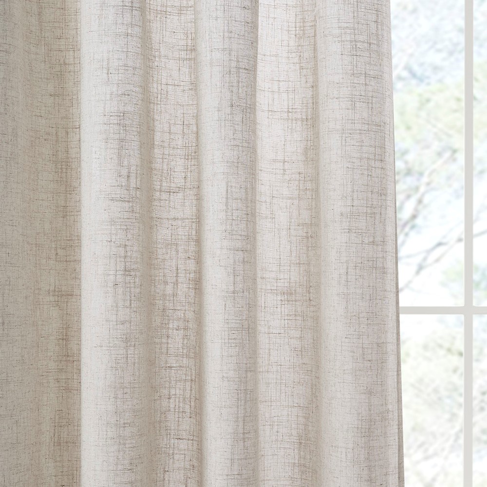 Casual and stylish, the Madison Park Kyler Linen Blend Light Filtering Window Panel Pair is an easy addition to freshen up any space. This window panel pair features a beautifully textured linen blend fabric in a soft natural tone creating a natural look and feel; while the lightweight fabric lets the right amount of light into your home for a bright, yet soft and airy touch. A rod pocket top makes these curtains easy to hang, open, and close throughout the day while the back tab option provides a more tailored and clean update; both top finishes fit up to a 3″ diameter rod. Machine washable for easy care, this light filtering window panel pair is also OEKO-TEX certified, meaning it does not contain any harmful substances or chemicals to ensure quality comfort and wellness. Each panel comes as a pair for additional value that’s ready to decorate your home; Complete the look with coordinating roman shades, available and sold separately.