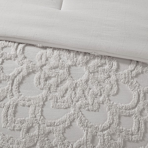 The Madison Park Laetitia Tufted Cotton Chenille Medallion Comforter Set provides an alluring shabby chic update to your bedroom. This globally inspired comforter features a 100% cotton face and reverse with a tufted chenille medallion centered on top of the bed. The 2 matching shams (1 in Twin/Twin XL) coordinate with the cotton comforter to complete the boho look. Perfect for all season use, this bedding set is also OEKO-TEX certified, meaning it does not contain any harmful substances or chemicals to ensure quality comfort and wellness. Due to the nature of the chenille fabric, some shedding will occur naturally in the first 3-4 washes. Items in the set may come in a rolled or compressed packaging, which will need to be fluffed up or steam ironed before use to remove wrinkles.