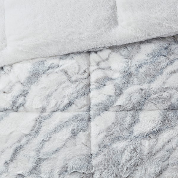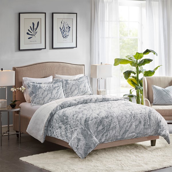 Madison Park Lana Marble Faux Fur Comforter Set in Grey/Blue, Queen MP10-6570