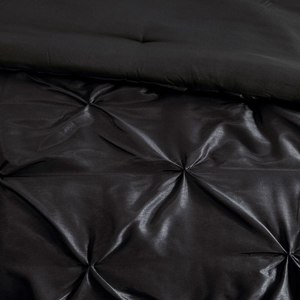 This beautifully tufted bed is from the Laurel Bedding Collection. Its gorgeous, true black color makes this set easy to accessorize your bedroom. The collection is made from 100% polyester polyoni and has pieced fabric sewn together to give this set dimension. It is finished with a smooth edge of fabric that creates a beautiful border around this comforter. Items in the set may come in a rolled or compressed packaging, which will need to be fluffed up or steam ironed before use to remove wrinkles.