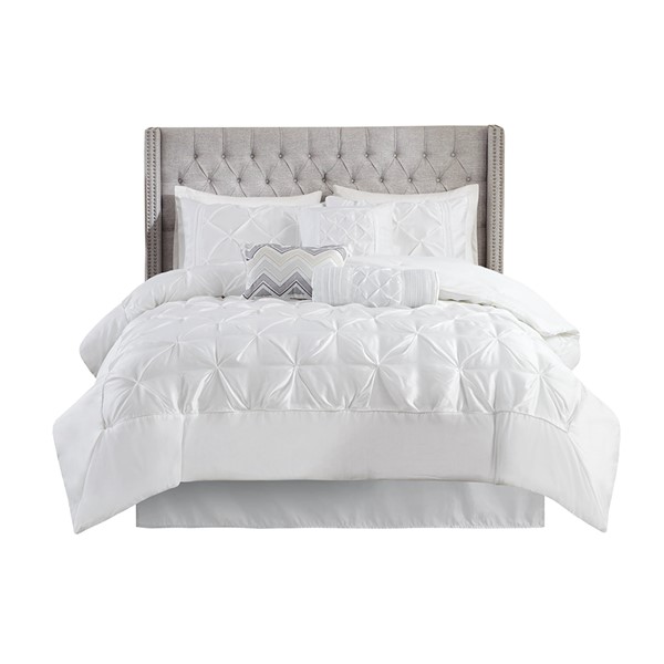 This beautifully tufted bed is from the Laurel bedding collection. Its white coloring makes this set easy to accessorize in your bedroom. The collection is made from 100% polyester polyoni and has pieced fabric sewn together to give this set added dimension. It is finished with a smooth edge of fabric that creates a beautiful border around this comforter. Items in the set may come in a rolled or compressed packaging, which will need to be fluffed up or steam ironed before use to remove wrinkles.