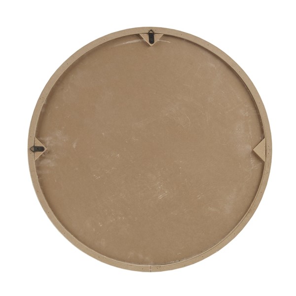 * Round dimensional wall art with laser cut medallion pattern and natural wood colored frame