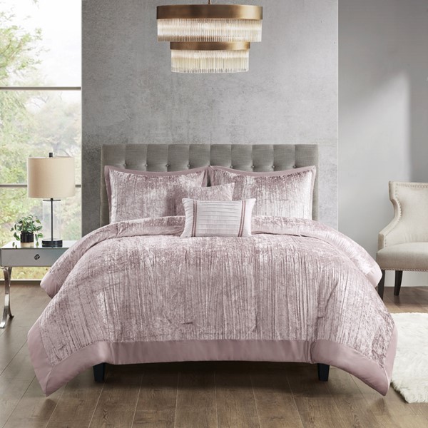 Madison Park Lee 5 Piece Crinkle Velvet Comforter Set in Blush, Full/Queen MP10-8353