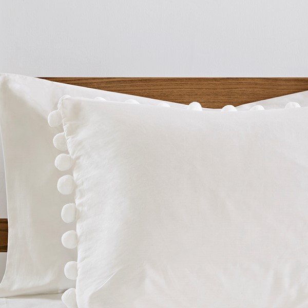 * Contemporary matching shams with pom pom borders