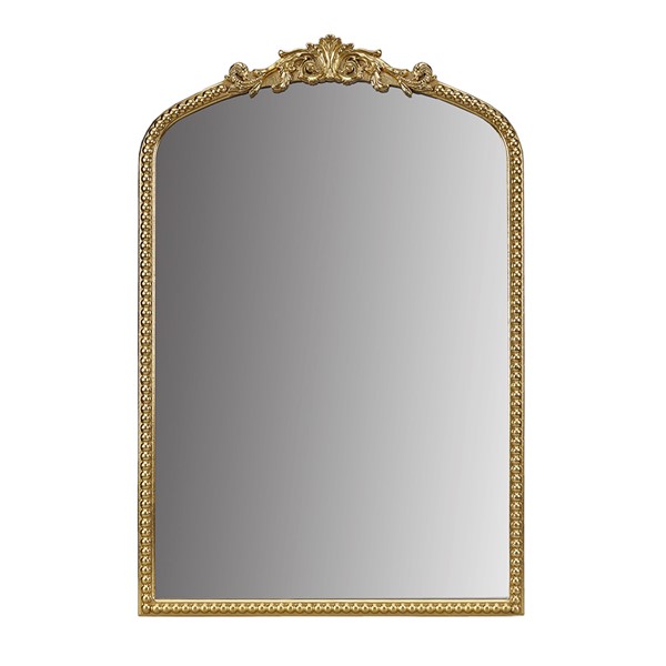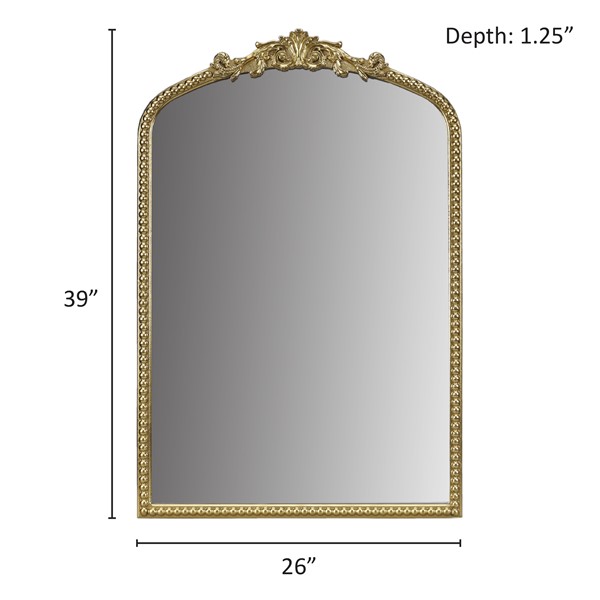 * Vintage-inspired framed wall mirror features an arched shape with adornments on the top of the arch
