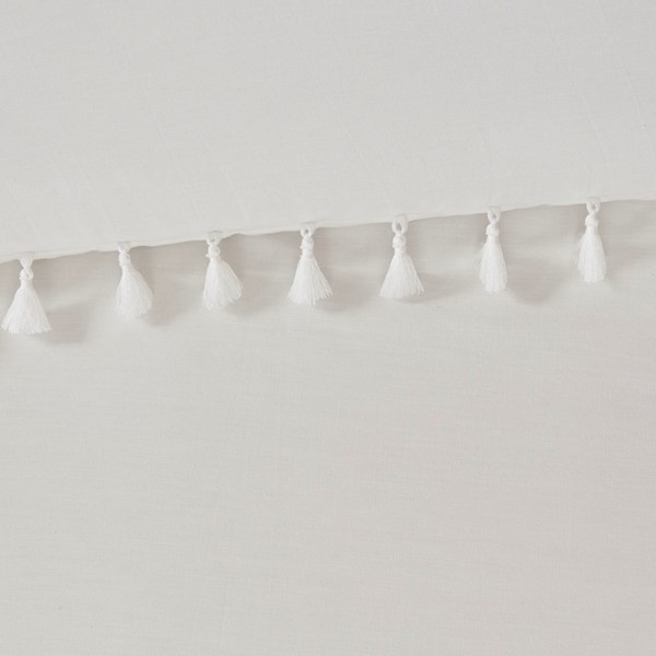 Give your bedroom a truly relaxing appeal with the casual style of Madison Park’s Lillian 3 Piece Cotton Duvet Cover Set. The 100% cotton percale duvet cover and shams flaunt tassel-trimmed edges for a charming bohemian look. Button closures on the duvet cover help secure a comforter insert within the duvet cover, while the internal ties in the corners help prevent it from shifting. The matching shams feature envelope-style closures that help keep your pillows secure and maintaining the clean aesthetic. With its beautiful Ivory hue, this cotton duvet cover set pairs easily with most decors and is machine washable for easy care.