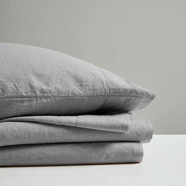 Experience refreshing comfort with the Madison Park Linen Blend 4 Piece Sheet Set. Made from breathable cotton that has been paired with the rich texture of linen, this sheet set is incredibly soft and absorbent to create a luxurious look and feel. The hemstitching adds a decorative touch, while also adding durability to the seams. The fabric comes pre-washed to improve durability and softness. Simple and clean, this linen blend sheet set offers a casual and relaxing addition to your bedroom. Machine washable for easy care, this solid sheet set is OEKO-TEX certified, meaning it does not contain any harmful substances or chemicals to ensure quality comfort and wellness. Set includes: 2 Pillowcases, 1 Flat Sheet, and 1 Fitted Sheet.