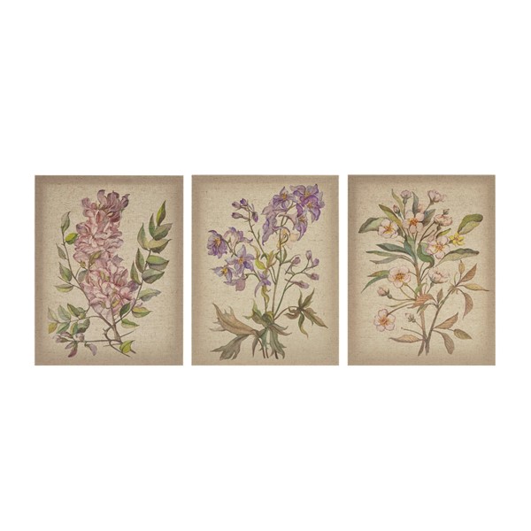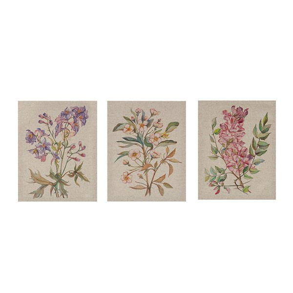 Bring the organic touch of a charming garden inside your home with our Madison Park Linen Botanicals Illustration 3-piece Canvas Wall Art Set, by Artist Jin Jing. This three piece set features soft and lovely florals in pink, purple, and green hues on a linen canvas for a beautifully natural look and feel. A Sawtooth is finished on the reverse of each piece making this wall art set easy to hang. Comes as a 3 Piece Set with each piece measuring 14×11"; display pieces together with desired amount of space in between to complete any wall or hang each separately throughout your home to bring a little life to any space.