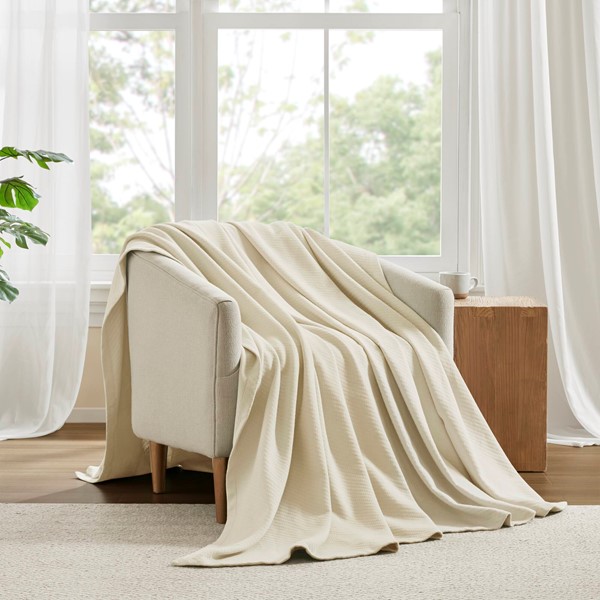 Based on multiple reviews, I ultimately chose to buy this Ivory-colored blanket. It’s made of 100% cotton and has the perfect weight for covering our King-size bed during the warmer months in south-central Texas, where our central air is constantly running from March to September. While some reviews mentioned leftover lint after washing, I wasn’t worried since it’s made of pure cotton.