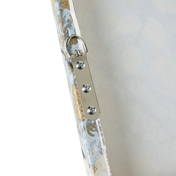 This painting was ideal for our bathroom update, featuring lovely gold accents and a wooden frame with hanging brackets included.