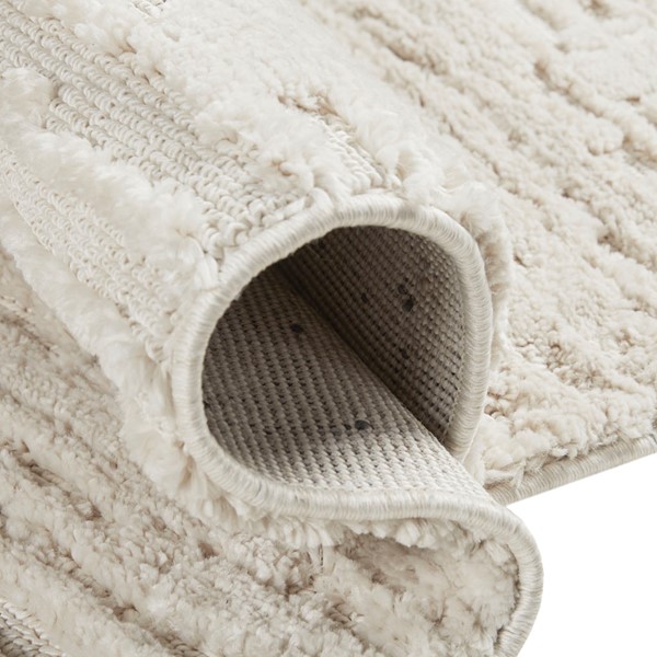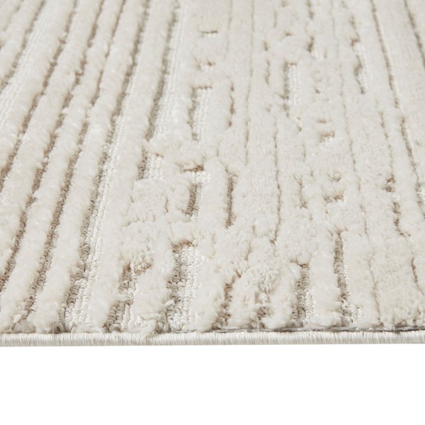 Our Madison Park Madis Terni Textured Cream Indoor Area Rug offers a clean modern touch to your home. This indoor area rug features a machine woven stria textured pattern in soft cream hues, while the soft medium pile provides simple, plush comfort. A sprayed transparent latex reverse helps prevent the area rug from sliding or shifting on your floor, making this rug perfect for high-traffic areas. Easy to clean – simply vacuum or spot clean this rug for the best overall care.