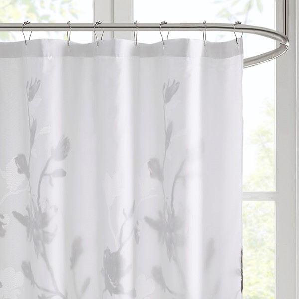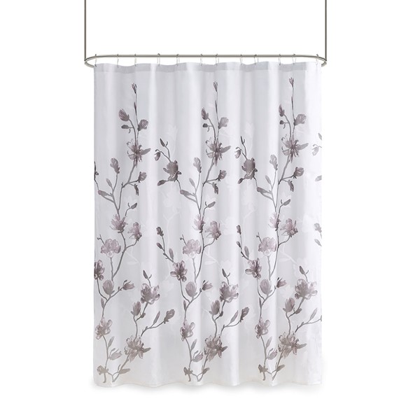 Add a soft touch of beauty to your bathroom with our Madison Park Magnolia Floral Printed Burnout Shower Curtain. This light weight shower curtain features a beautiful floral printed burnout design in soft purple and grey hues, for a fresh and modern duet. An added microfiber liner provides better privacy and drapability; while still machine washable for easy care. Measuring 72"x72", this floral shower curtain is the perfect addition for a lively, feminine touch.