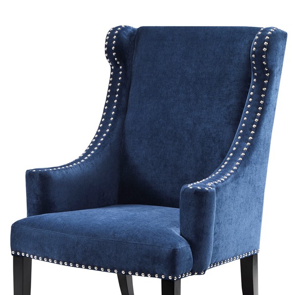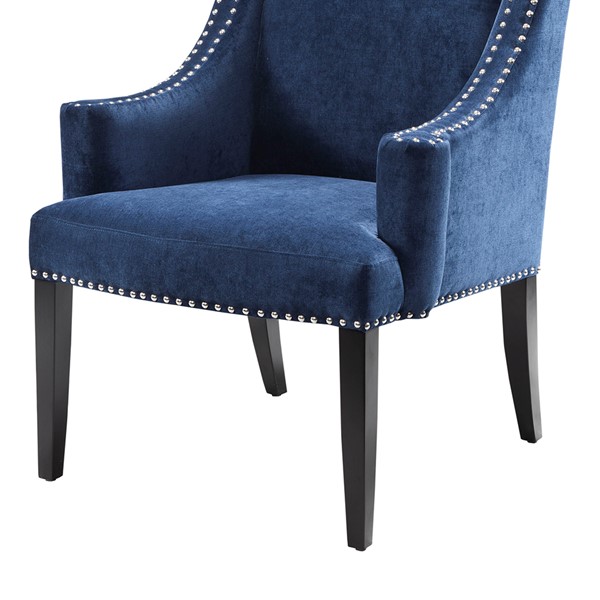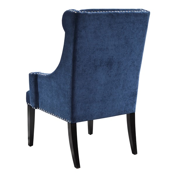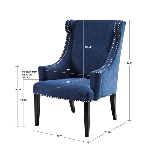 Add this stylish piece to your decorating mix as an updated accent wing chair with curved arms and double row nail head trim. Leg assembly required.