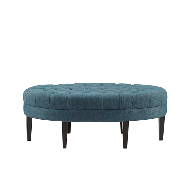 Prop up your feet and relax with the Madison Park Martin Surfboard Tufted Ottoman. This upholstered oval-shaped ottoman features a button tufted top that adds an elegant modern look. Solid wood straight legs with dark finish create a rich and striking contrast. Use this tufted ottoman as the perfect centerpiece in your living room to complete your decor. Only leg assembly is required. Spot clean or professional steam clean.