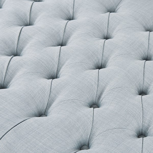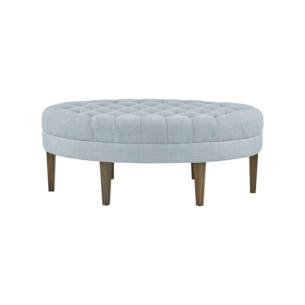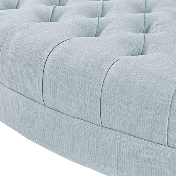Prop up your feet and relax with the Madison Park Martin Surfboard Tufted Ottoman. This upholstered oval-shaped ottoman features a button tufted top that adds an elegant modern look. Solid wood straight legs with dark finish create a rich and striking contrast. Use this tufted ottoman as the perfect centerpiece in your living room to complete your decor. Only leg assembly is required. Spot clean or professional steam clean.