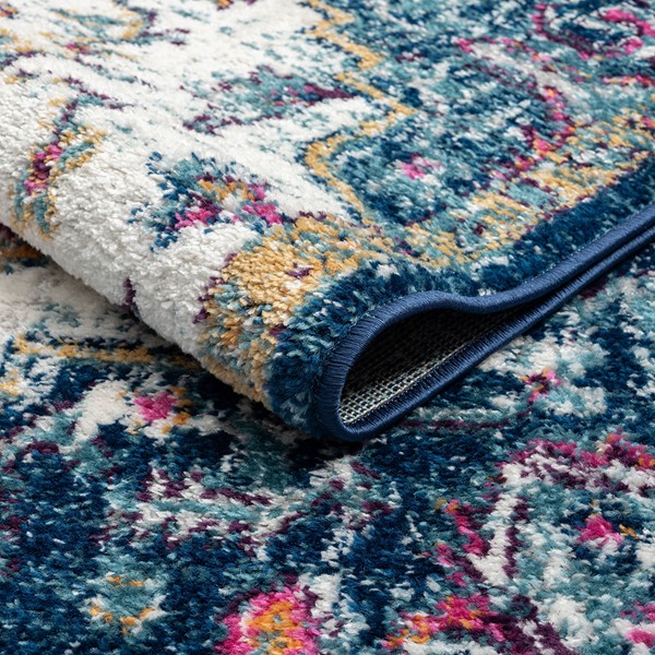 Bring a striking color and style to your home with the Madison Park Mateo Boho Medallion Multi Woven Area Rug. Made in Turkey, this area rug features a boho-inspired medallion pattern in shades of orange and blue creating a vibrant globally inspired look. The soft, medium pile makes the woven rug well suited for high traffic areas, while the transparent sprayed latex reverse helps keep the rug from sliding. A rug pad is still highly recommended to keep the rug in place. Stain and fade resistant, this woven area rug is OEKO-TEX certified, meaning it does not contain any harmful substances or chemicals to ensure quality comfort and wellness. Rug is available in multiple sizes, which makes it perfect for your living room, family room, or entryways. To clean, use a vacuum or spot clean.