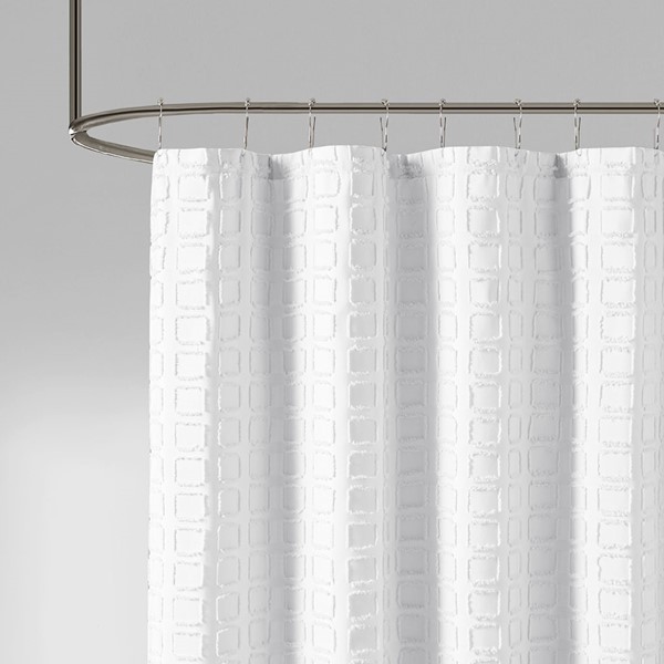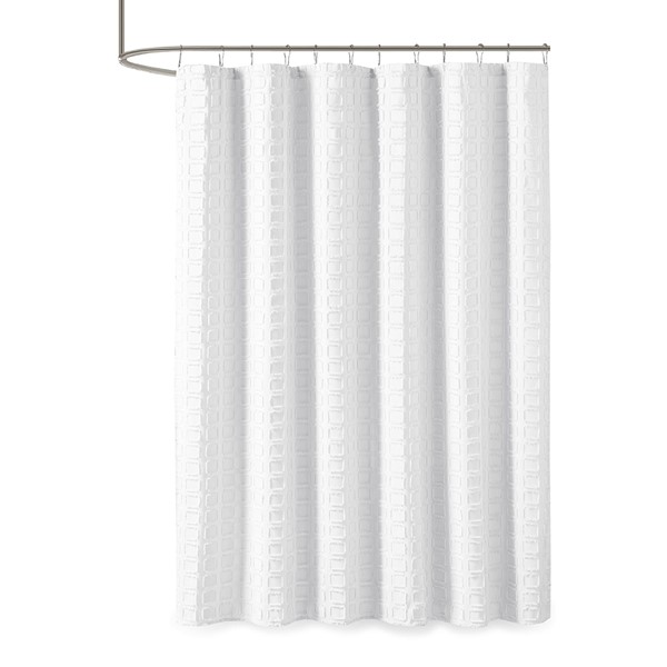 Elevate your bathroom decor with the Madison Park Metro Woven Clipped Solid Shower Curtain. This solid white shower curtain features a woven square geometric design with a clipped treatment to create beautiful texture and dimension, for an updated look. Measuring 72″x72″, this shower curtain adds a chic modern touch to your bathroom and is machine washable for easy care. A water repellant liner is not included, but highly recommended and can be purchased separately.