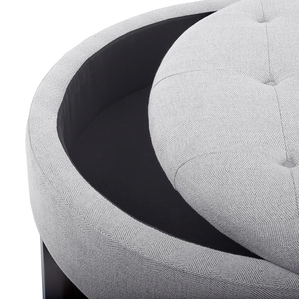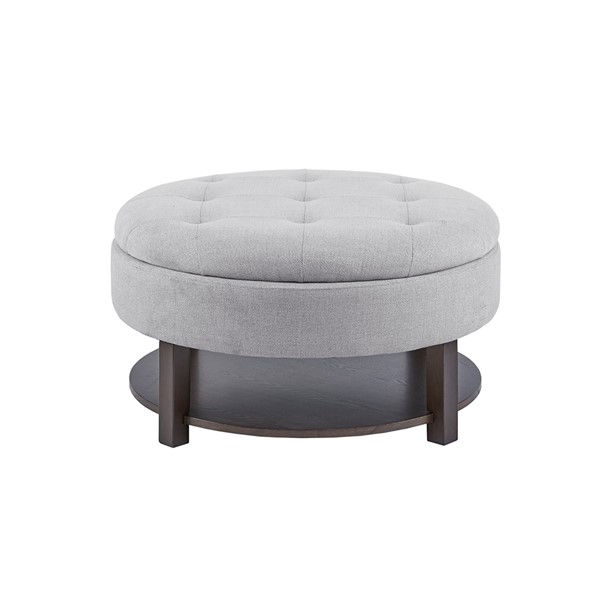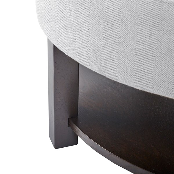 Madison Park Miller Round Storage Ottoman in Light Grey/Brown MP101-1045