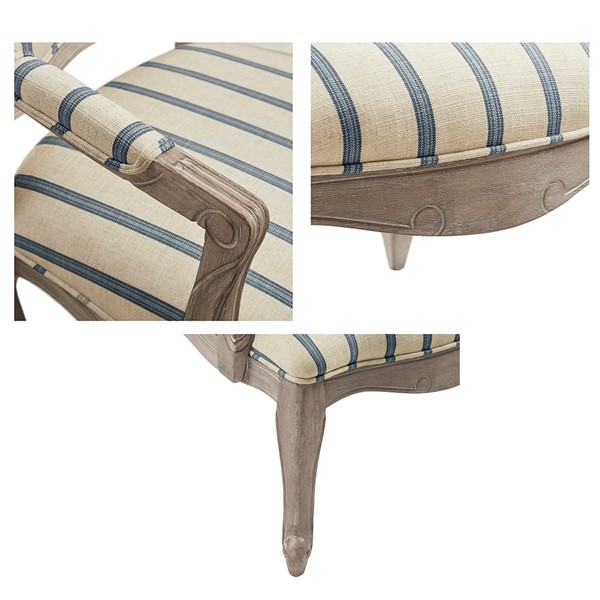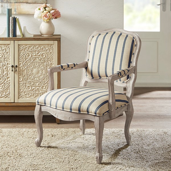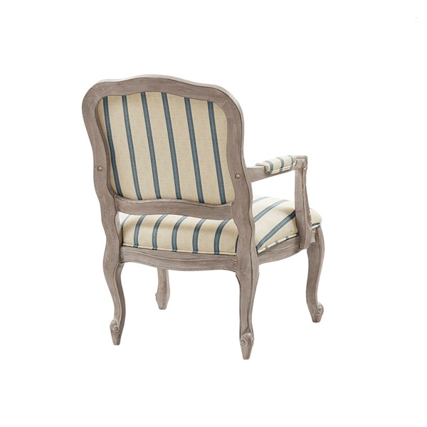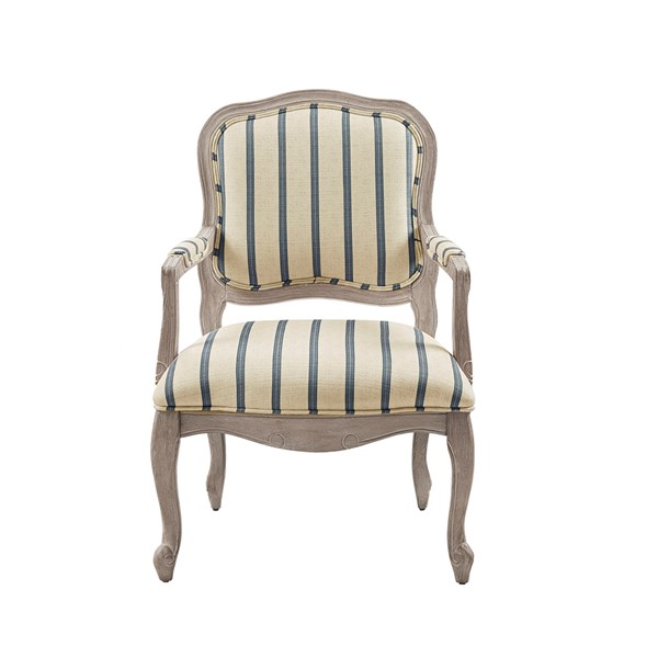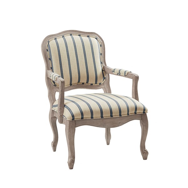 Update your living room decor with the Madison Park Monroe Accent Chair. This accent chair is upholstered in a natural-hued stripe pattern fabric and features pillow-topped arms for a sophisticated look. A reclaimed wood finish complements the upholstery, while the cabriole solid wood legs create an elegant silhouette. Beautifully designed, this accent chair brings a handsome style to your living space. Assembly required.