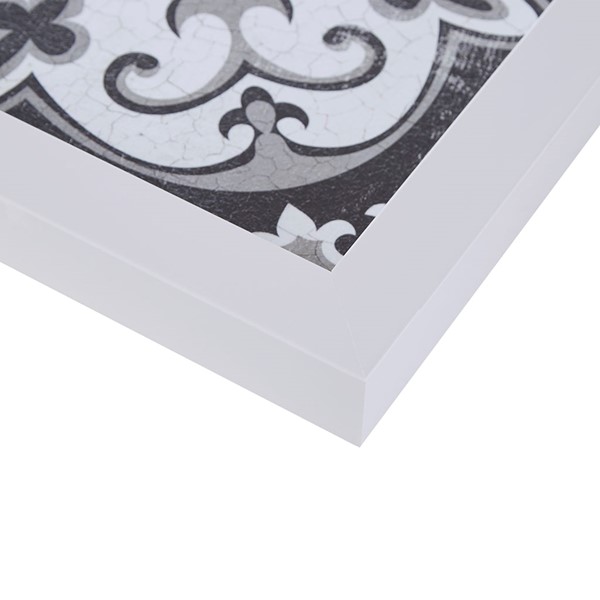 * Wall art set with 3 different distressed and textured black and white tile patterns and solid white frame