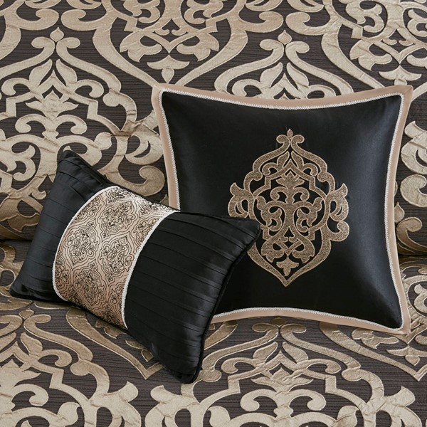 Madison Park Odette 8 Piece Jacquard Comforter Set in Black, King MP10-8726