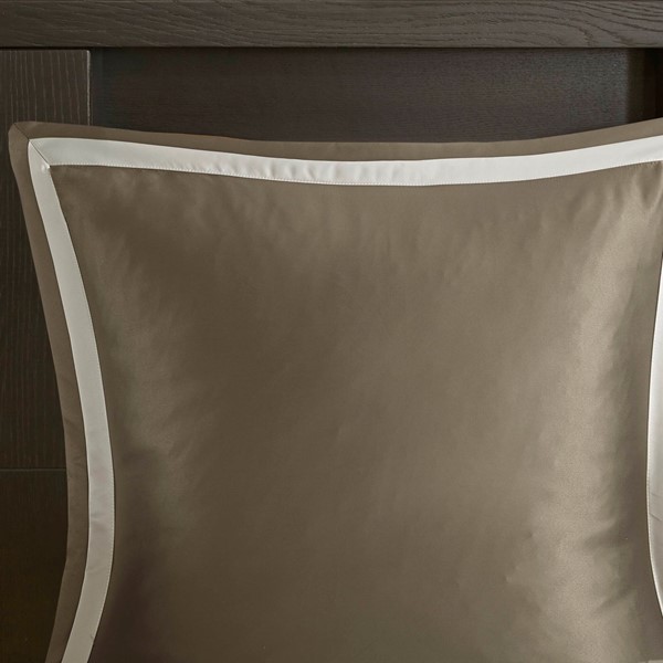 Comforter/Sham: 100% polyester jacquard with damask stria texture face, 100% polyester microfiber reverse