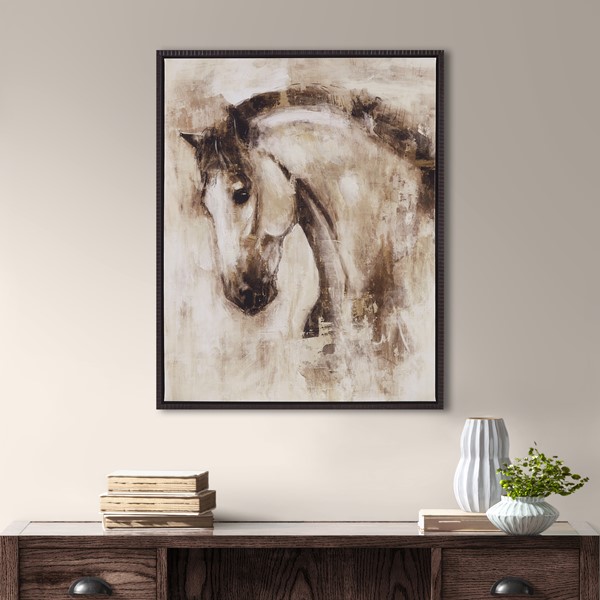 * Framed canvas wall decor with a classic, traditional horse art in a painterly hand