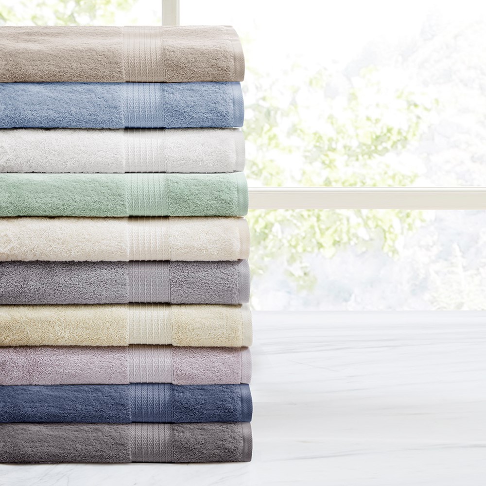 The Madison Park 6 Piece Organic Cotton Towel Set brings an all-natural, fresh touch to your bathroom decor. These 650gsm towels feature long staple GOTS certified organic yarns that are exceptionally soft and absorbent, while the low twist construction provides more air and space between fibers to dry faster for maximum use and comfort throughout the day. Machine washable for easy care, each towel is also OEKO-TEX certified, meaning it does not contain any harmful substances or chemicals, ensuring quality comfort and wellness. Set includes: 2 oversized 30×54″ bath towels, 2 standard 18×30″ hand towels, and 2 standard 13×13″ wash towels.