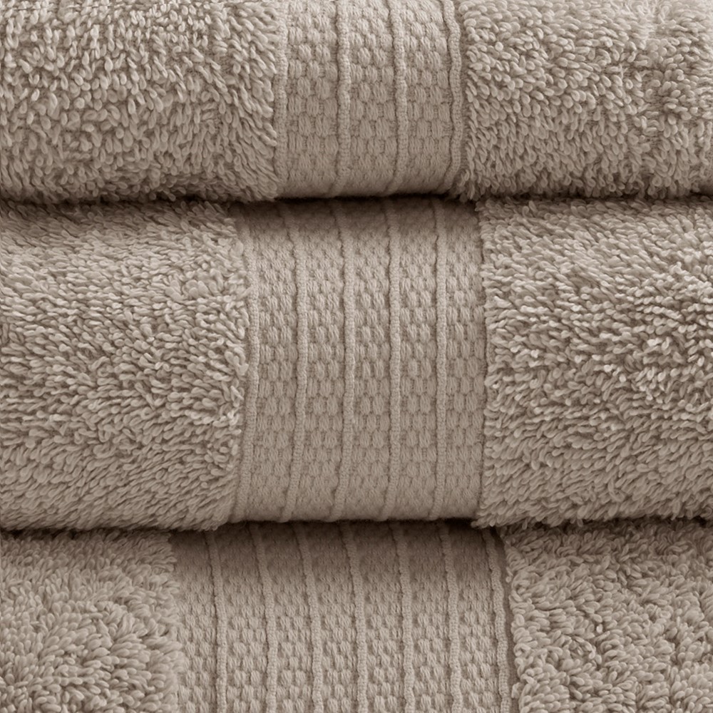 The Madison Park 6 Piece Organic Cotton Towel Set brings an all-natural, fresh touch to your bathroom decor. These 650gsm towels feature long staple GOTS certified organic yarns that are exceptionally soft and absorbent, while the low twist construction provides more air and space between fibers to dry faster for maximum use and comfort throughout the day. Machine washable for easy care, each towel is also OEKO-TEX certified, meaning it does not contain any harmful substances or chemicals, ensuring quality comfort and wellness. Set includes: 2 oversized 30×54″ bath towels, 2 standard 18×30″ hand towels, and 2 standard 13×13″ wash towels.