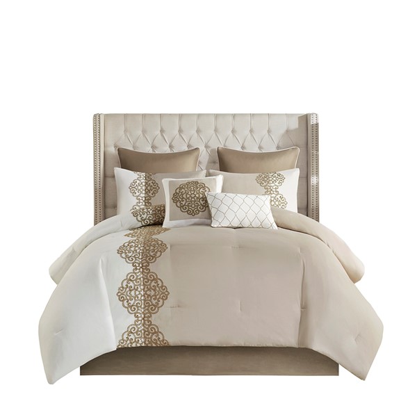 Madison Park Panache 8 Piece Embroidered Microfiber Comforter Set in Tan, King MP10-8146