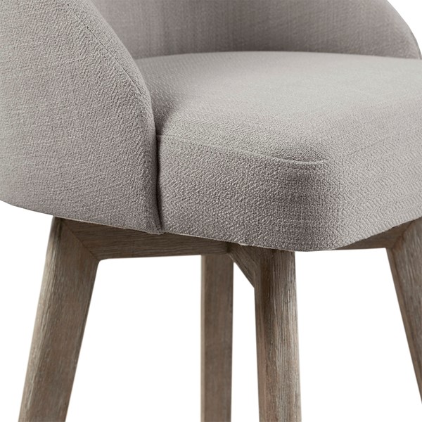 Beautifully crafted, the Madison Park Pearce Barstool with Swivel Seat introduces a perfect blend of simplicity and sophistication. This barrel style counter stool features a swivel function, allowing you to easily rotate the upholstered seat. A smooth reclaimed grey finish on the rubber wood legs creates a clean transitional look, while a matte metal ring provides the perfect footrest. The smooth and graceful curves of this counter stool form an elegant silhouette that adds a handsome touch to your dining room. Assembly is required. Max weight capacity: 300 lbs.