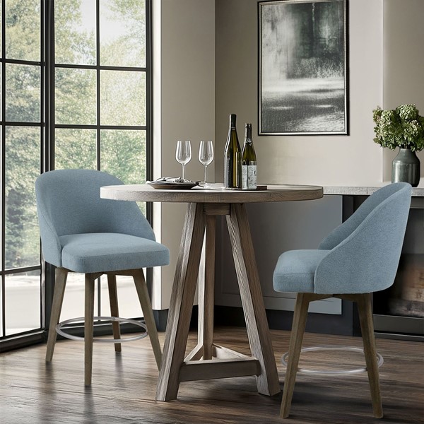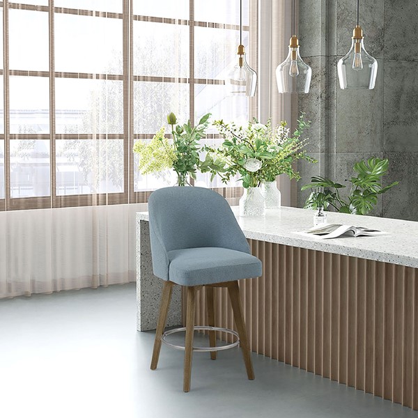Elevate your kitchen or dining space with the Madison Park Pearce Swivel Counter Stool, offering both style and comfort. Its smooth 360-degree swivel mechanism ensures easy movement, while the armless design tucks neatly under counters, perfect for small spaces. Crafted with solid wood legs and a wire-brushed finish, it combines durability with timeless charm. The padded back and foam seat provide excellent comfort, complemented by elegant piping details and a sturdy metal footrest. The versatile design seamlessly fits into modern, transitional, or even rustic spaces, making it ideal for any home. Easy assembly required
