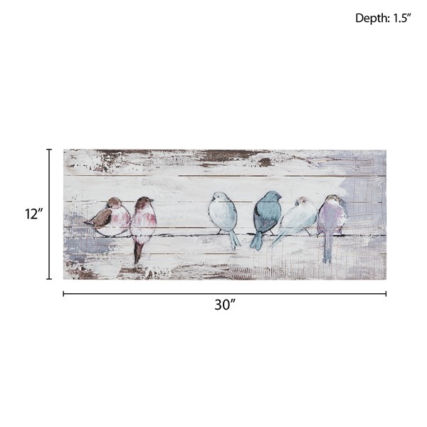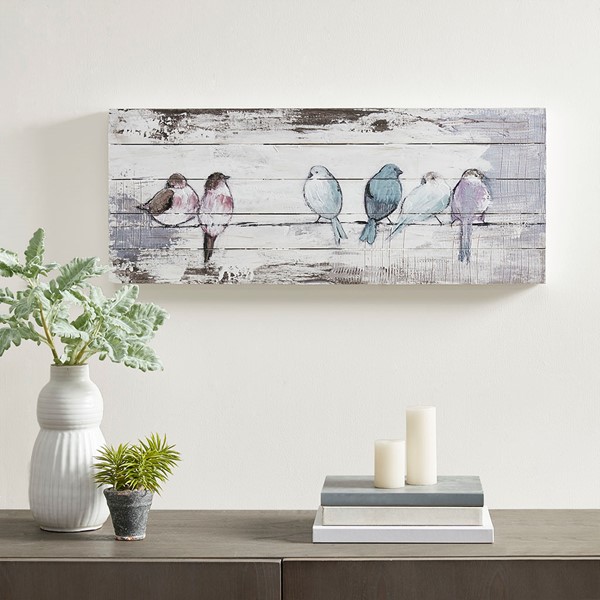 4 reviews for Madison Park Perched Birds Hand Painted Wood Plank Panel Wall Decor in White/Grey, One Size MP95B-0217